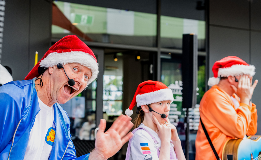 Sing, dance, and enjoy a free kids’ show with The Mik Maks, plus crafts and Santa photos.